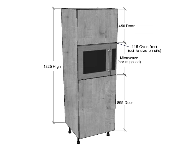 1 @ 450mm (h) x 596mm (w) - Top Door 1 @ 115mm (h) x 596mm (w) - Oven Trimmer (cut to size on site) 1 @ 895mm (h) x 596mm (w) - Bottom Door |