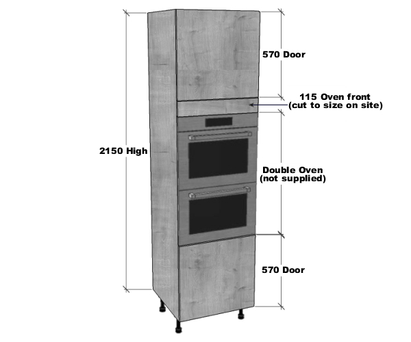1 @ 570mm (h) x 596mm (w) - Top Door 1 @ 115mm (h) x 596mm (w) - Oven Trimmer (cut to size on site) 1 @ 570mm (h) x 596mm (w) - Bottom Door |