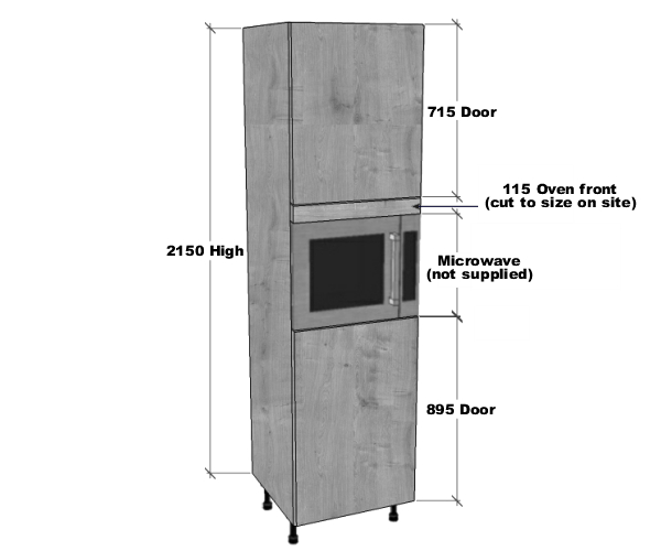 1 @ 715mm (h) x 596mm (w) - Top Door 1 @ 115mm (h) x 596mm (w) - Oven Trimmer (cut to size on site) 1 @ 895mm (h) x 596mm (w) - Bottom Door |
