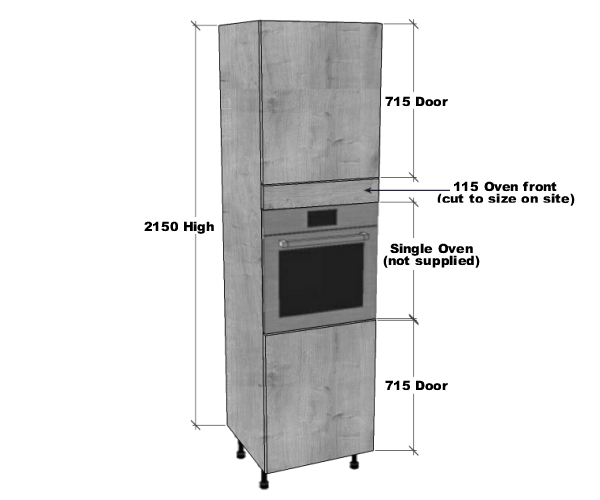 1 @ 715mm (h) x 596mm (w) - Top Door 1 @ 115mm (h) x 596mm (w) - Oven Trimmer (cut to size on site) 1 @ 715mm (h) x 596mm (w) - Bottom Door |