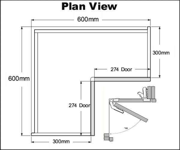 Required Doors: | 2 @ 895mm (h) x 296mm (w) (Bifold) Based on 300mm deep sides |