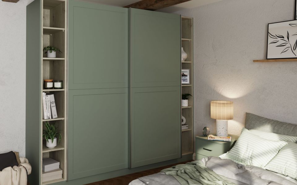 - Wardrobe doors have a two panel design with a mid rail positioned 655mm from bottom of door to the middle of the mid rail unless otherwise specified