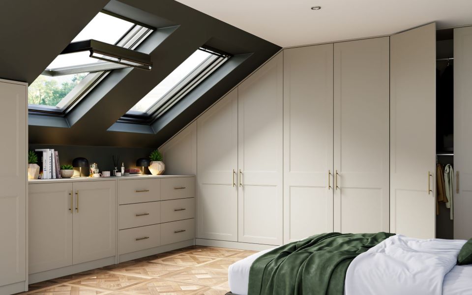- In summary, Rowen Style in Supermatt Taupe Grey Kitchen is a celebration of the fusion between classic and modern design elements. With its stunning color palette, luxurious gold accents, durable quartz worktop, wooden chairs, and modern lighting, it offers the perfect blend of aesthetics and functionality for those who appreciate the best of both worlds in kitchen design.