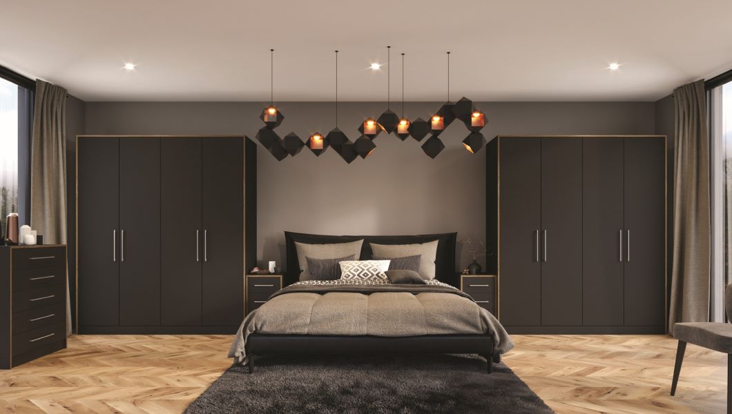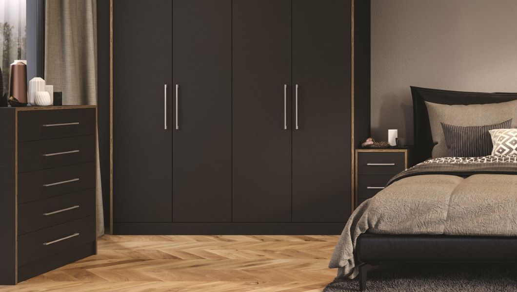 Zurfiz serica matt bedroom cupboard doors in Black provide a modern aesthetic, perfect for designing your dream bedroom.