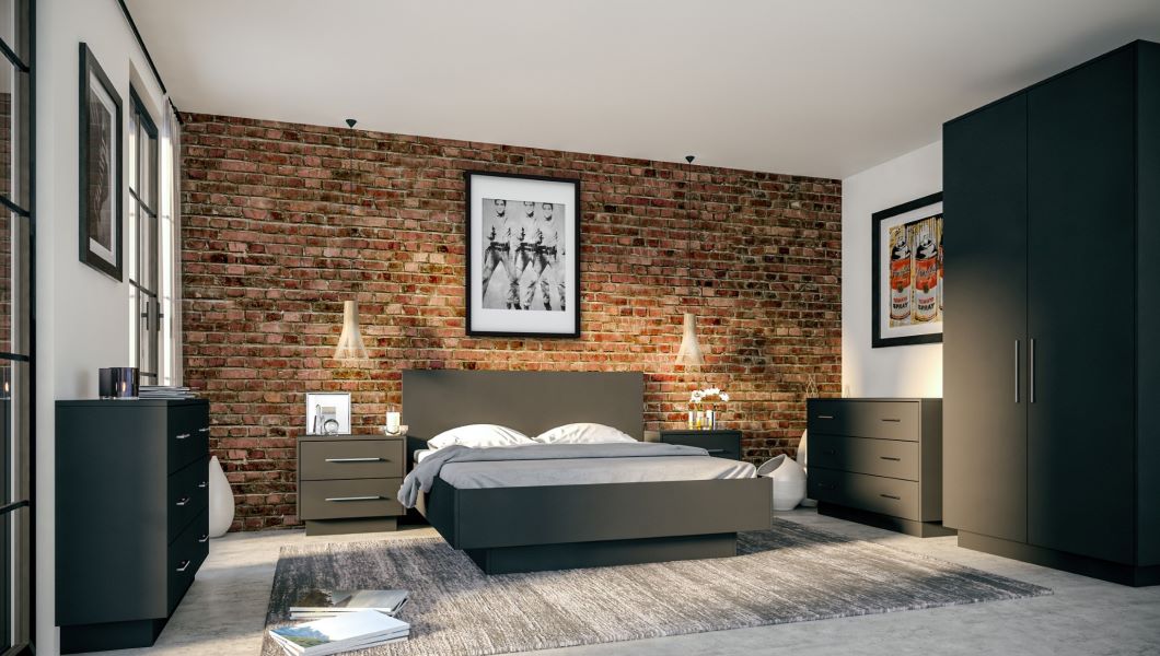 The graphite grey bedroom doors are rich in colour and instantly create a modern look.