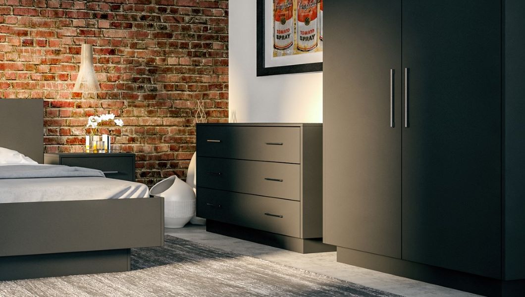 Achieve the ultimate contemporary bedroom with our Supermatt Graphite Zurfiz bedroom doors.