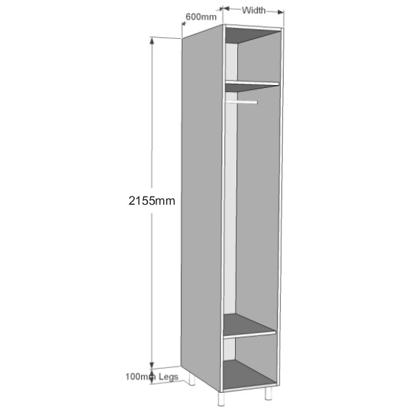 Dimensions: | 2155mm High + Legs x 400mm Wide x 600mm Deep |