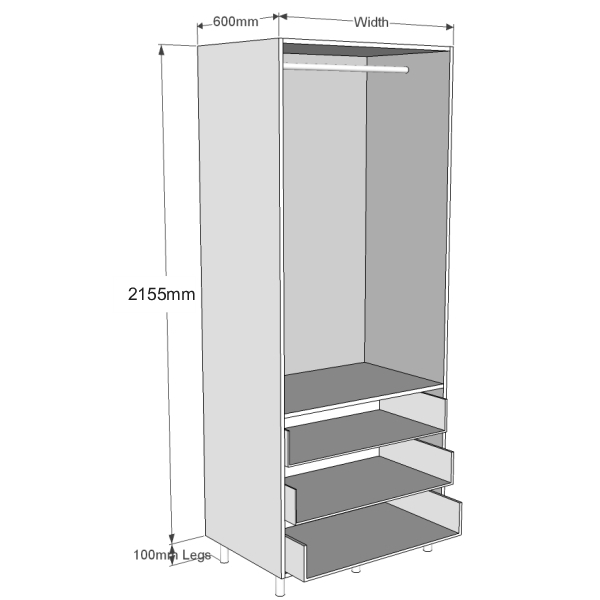 Dimensions: | 2155mm High + Legs x 1200mm Wide x 600mm Deep |