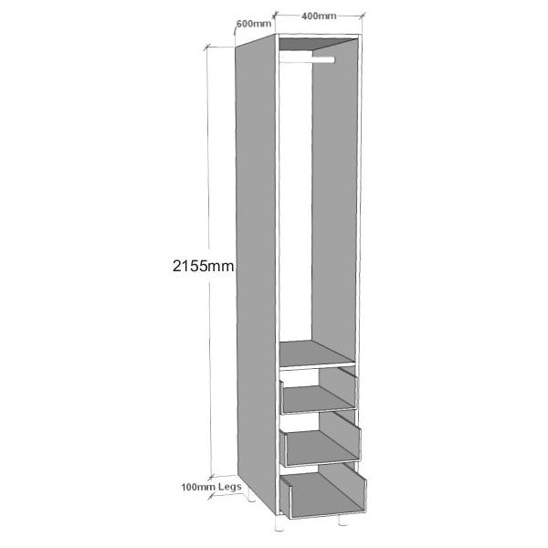 Dimensions: | 2155mm High + Legs x 300mm Wide x 600mm Deep |