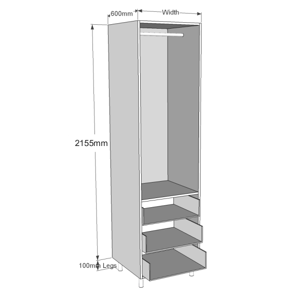 Dimensions: | 2155mm High + Legs x 500mm Wide x 600mm Deep |