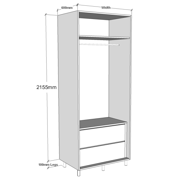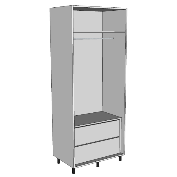 800 wide Single hanging wardrobe with 2 internal drawers