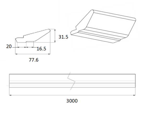 Dimensions: 32mm High x 78mm Wide x 3000mm Long