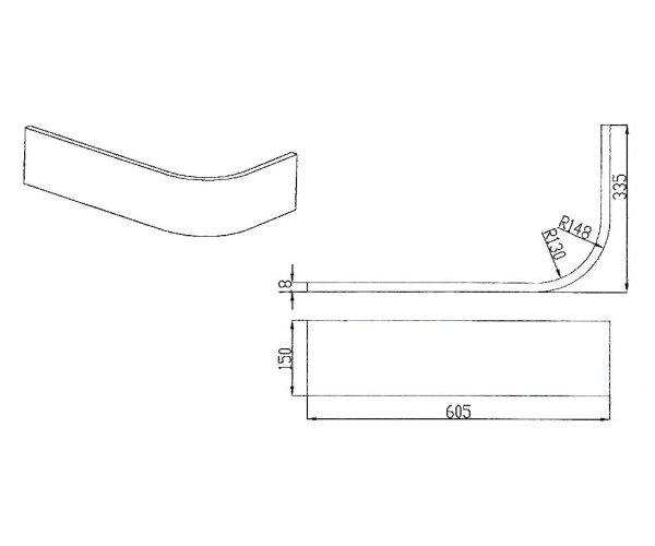 Dimensions: 150mm High x 335mm Wide x 605mm Deep