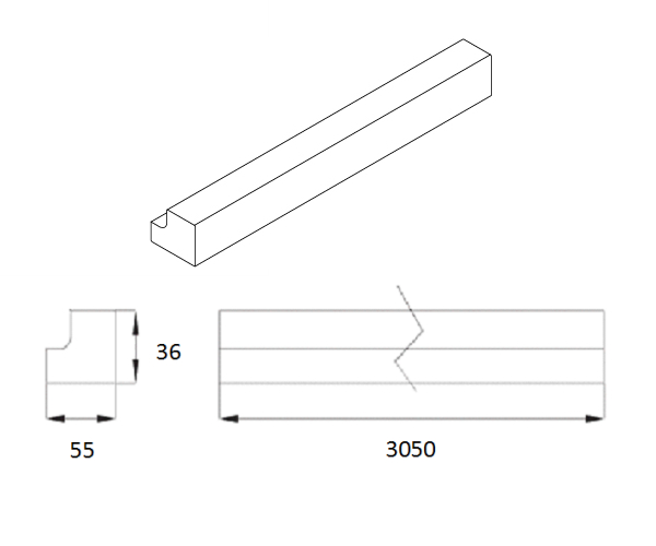 Dimensions: 36mm High x 55mm Wide x 3050mm Long