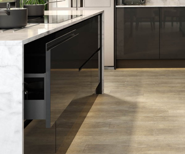 Full wrap high gloss door, laminated and edged with a PUR adhesive system giving the highest heat and moisture resistance available.
