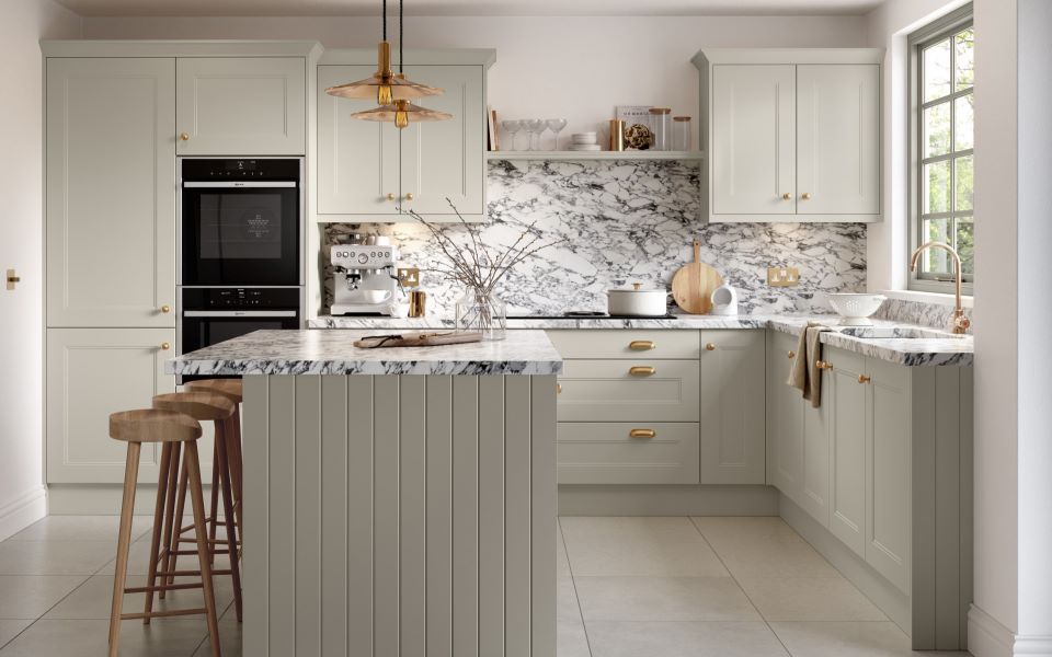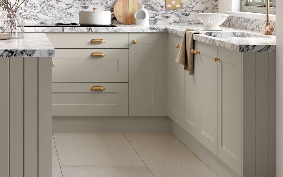 - The Rowen Style boasts clean lines and a sleek, minimalist profile. The Supermatt Taupe Grey finish enhances the beauty of the kitchen, giving it a modern twist while retaining a sense of tradition.