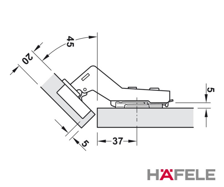 Metalla 110° Hinges, for 45° Angle Cabinets