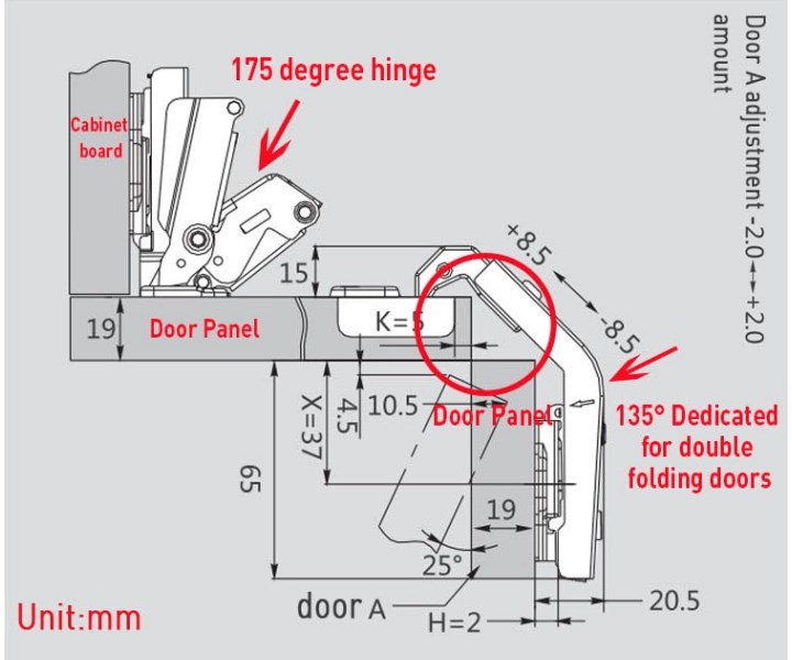 Metalla 135° Bi-fold Corner Hinge & Euro-Plate
