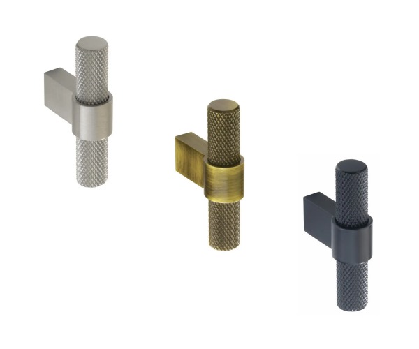The Knurled T-Bar Knob composes of a cylindrical bar fitted across a small base to form a T-bar shape. The T bar handle can be fitted either horizontally or vertically (for an even more modern look). The knurled t bar handle is perfect for stylish interiors seeking a clean and modern look, this T bar handle will make the perfect finishing touch to brand new cupboards and drawers or to brighten up kitchens by replacing old, tired-looking handles.