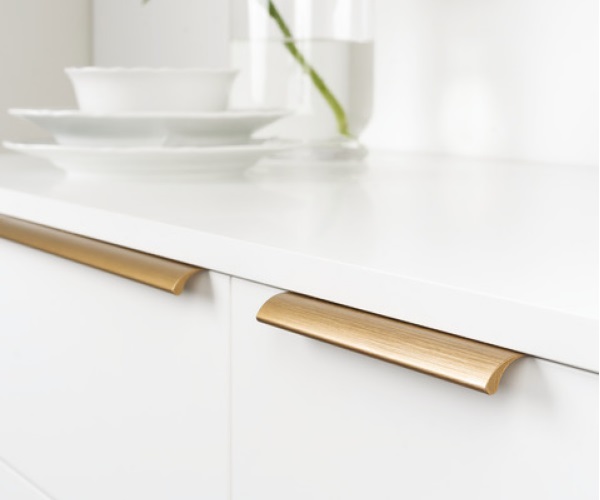 The Ona is a comfortable, minimalist aluminium profile handle, whose shape ensures a perfect grip, making it easy to use. The profile is an embedded piece that is easy to install, as it is screwed on from the rear, which means that it adapts to different furniture widths. It is ideal on pillars and kitchen islands. Available in brushed black, brushed grey and brushed brass.