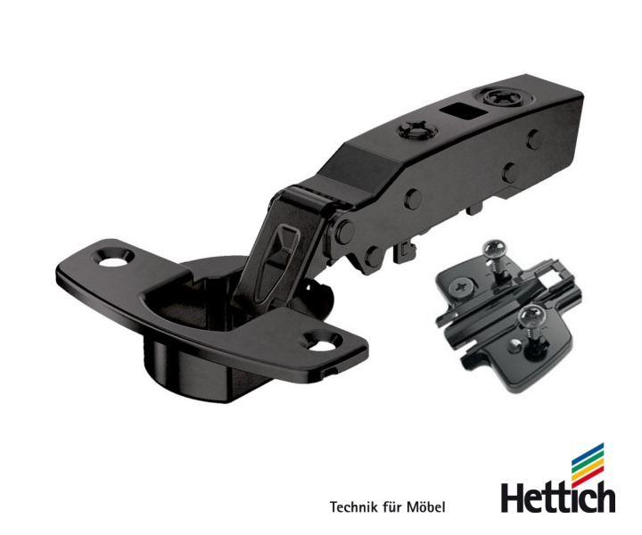 Hettich 110° Soft-close Hinge & Euro-Plate | Obsidian Black finish (Sensys 8645i)