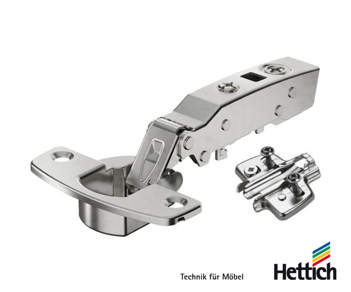 Hettich 110° Soft-close Hinge & Euro-Plate | Nickel Plated finish (Sensys 8645i)