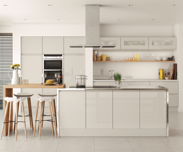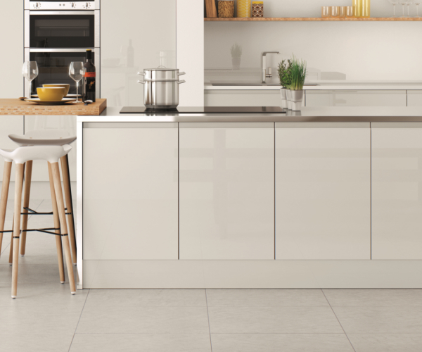 Fashion a beautiful modern kitchen with the Lucente Handleless Gloss Grey.