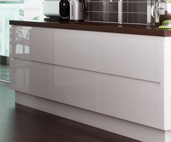 Create a streamlined contemporary kitchen with smooth flowing lines. Lucente Handleless doors in gloss white bring that feeling of uninterrupted calm and precision.