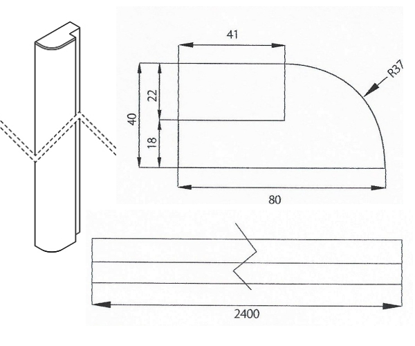 Panel type: | Curved end Pillar/Post is 2400 x 80 x 40.5mm |