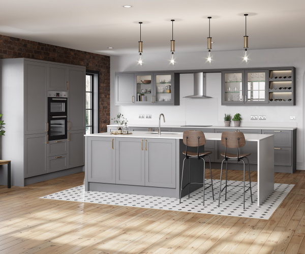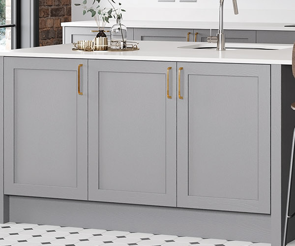 This classic shaker styled, real wood kitchen cabinet door painted in dust grey will add a contemporary twist to a traditional design.