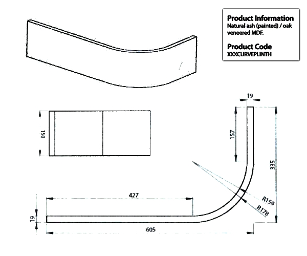Dimensions: 150mm High x 3050mm Long x 19mm Thick