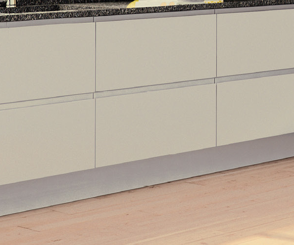 The Pronto Firbeck Range is an 18mm MDF slab door with a 1mm matching edging. This range is laminated in supergloss with a matching matt colour reverse.