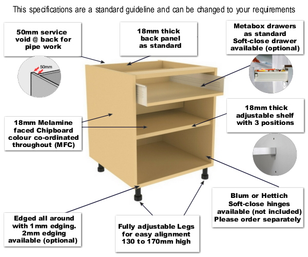 Constructed using 18mm High Density MFC throughout with solid 18mm back panels (View Colours HERE:)