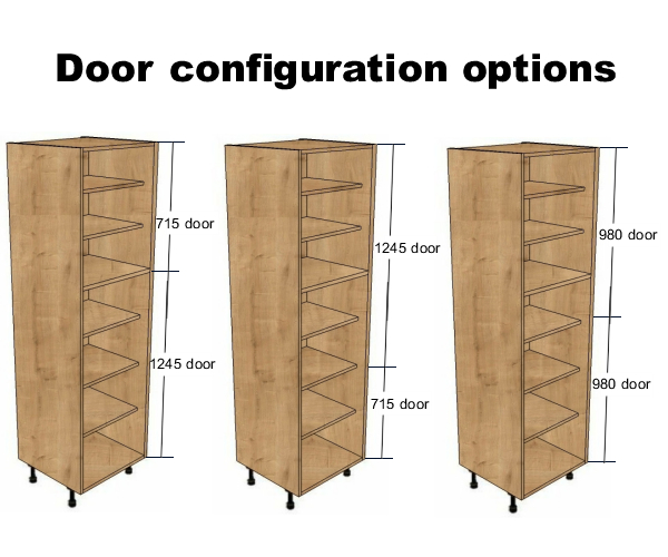 Required Doors: | Option 1 - 1 @ 715mm (h) x 596mm (w) - 1 @ 1245mm (h) x 596mm (w) Option 2 - 50/50 - 2 @ 980mm (h) x 596mm (w) |