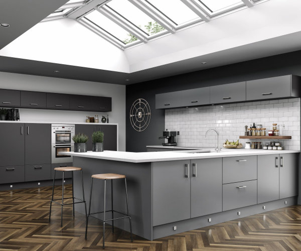 Super sleek Vivo+ Matt Dust Grey that is well suited for an ultra modern kitchen design.
