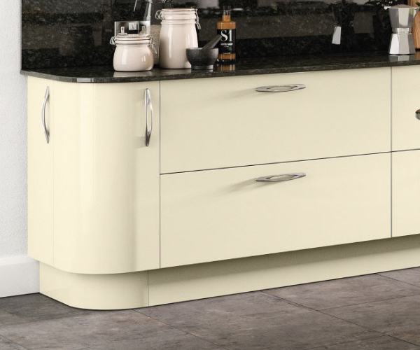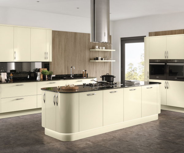 Super sleek Vivo+ Gloss Ivory is a glossy opaque grey that is well suited for an ultra modern kitchen design.