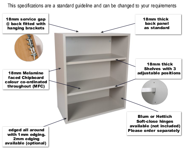 Constructed with 18mm High Density MFC throughout with solid 18mm back panels (View Colours HERE:)