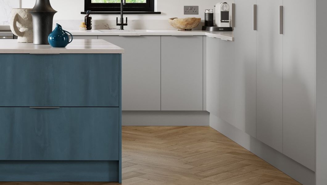 Zurfiz supermatt kitchen cupboard doors in light grey provide a modern aesthetic, perfect for designing your dream kitchen.