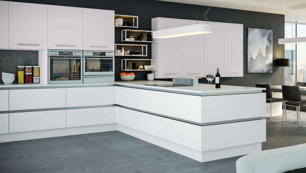 Zurfiz supermatt kitchen cupboard doors in white enhance the appearance of light and space, perfect for kitchens of all sizes